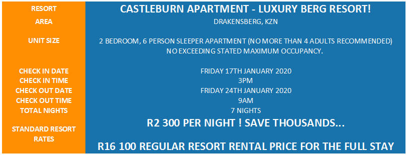 The estate borders on a Natal Parks Board nature reserve, neighbouring the uKhahlamba Drakensberg World Heritage Site proclaimed in year 2000 and the famous Giant's Cup hiking trail which passes through it. For chilly Berg evenings, the private, luxuriously furnished cottages have heating systems in the bedrooms and bathrooms and a stone fireplace; there is also an impressively equipped kitchen. A convivial lakeside clubhouse encourages friendly get-togethers.