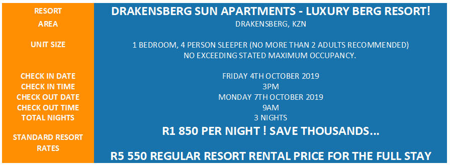 Situated in the heart of the magnificent Drakensberg mountains, the Drakensberg Sun Resort is one of the world’s most scenic holiday destinations. This family-friendly Drakensberg resort is the perfect place from which to explore the region’s many fascinating attractions – or simply to relax and unwind in one of South Africa’s most picturesque settings.