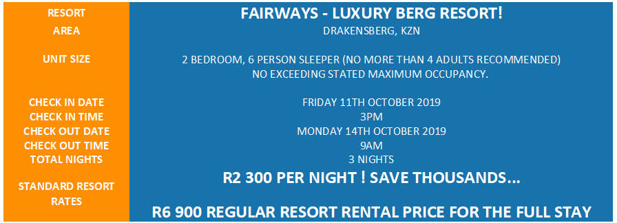 Situated on 860 acres of World Heritage site, Fairways has spectacular view of the only 18 hole golf course in the Southern Berg. Spectacular contrasts of the seasons are particularly breathtaking! From November to March we have lush green rolling hills and azure blue skies, while from April to June the leaves turn to rich reds and burnt oranges. In July, the snow caps the peaks of the mighty Drakensberg mountain range and occasionally blankets the golf course like a white tablecloth