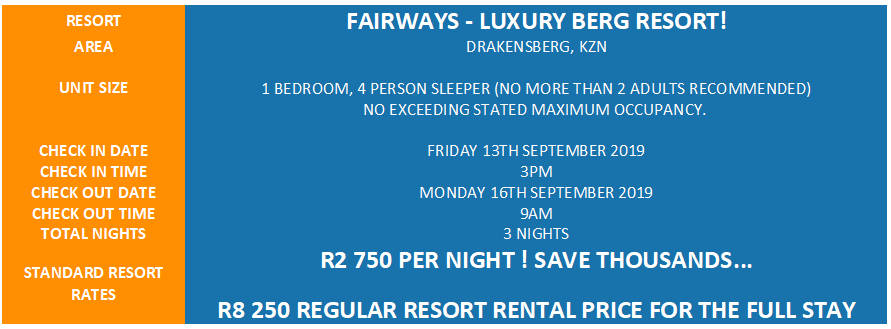 Situated on 860 acres of World Heritage site, Fairways has spectacular view of the only 18 hole golf course in the Southern Berg. Spectacular contrasts of the seasons are particularly breathtaking! From November to March we have lush green rolling hills and azure blue skies, while from April to June the leaves turn to rich reds and burnt oranges. In July, the snow caps the peaks of the mighty Drakensberg mountain range and occasionally blankets the golf course like a white tablecloth