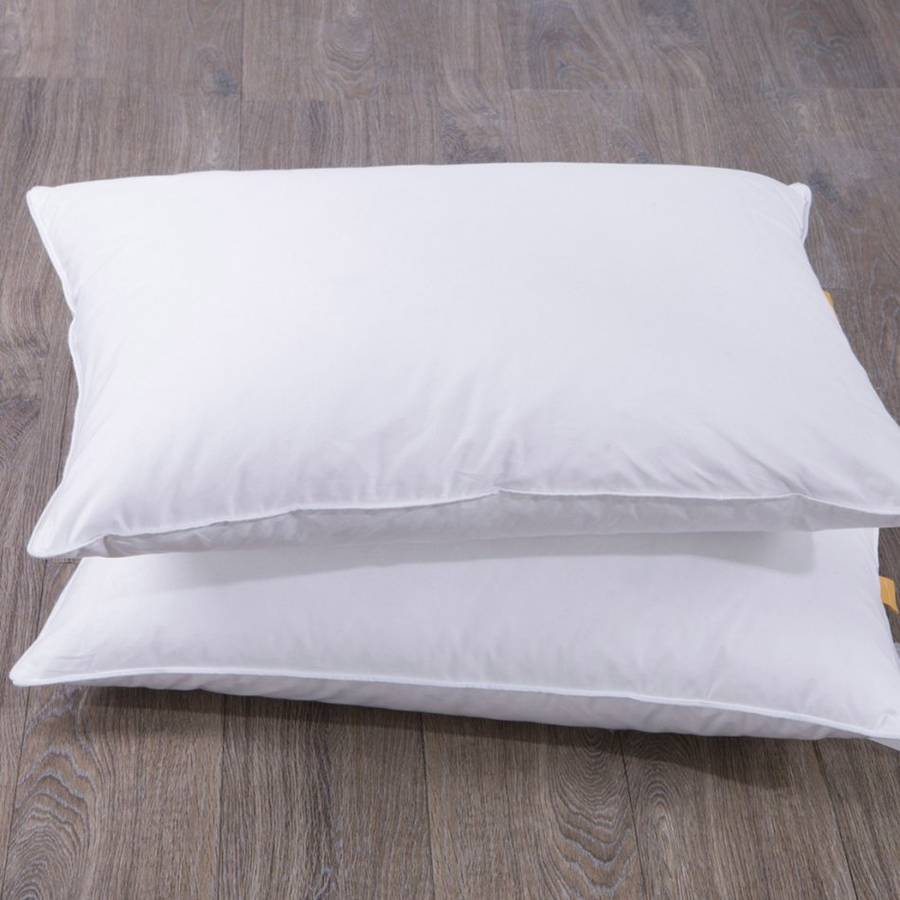 The pillow is filled with 5% white goose down and 95% white goose feather. It offers even sensitive sleepers a cozy, restful sleep. Soft, light 100 Goose Feather filling provides superior comfort worthy of any 5 star hotel.