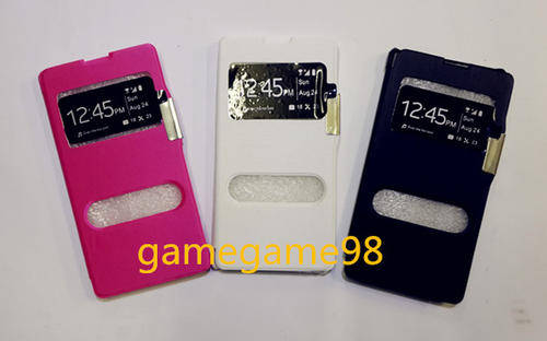 luxury Magnetic close double window flip case for SONY Xperia Z2 with free screen guard