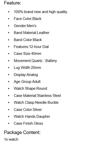 Luxury Men Quartz Sport Military Stainless Steel Dial Leather Band Wrist Watches