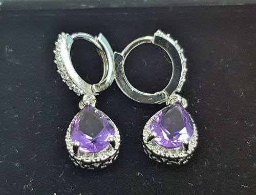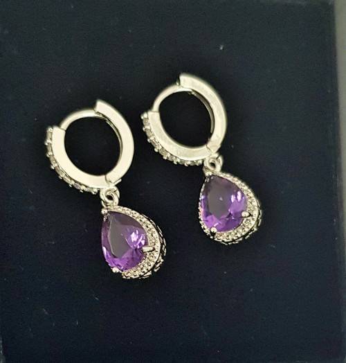 Luxury Purple Crystal Sapphire Women's Earrings Love Drop Shaped High Quality Earrings