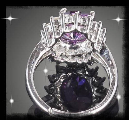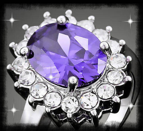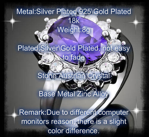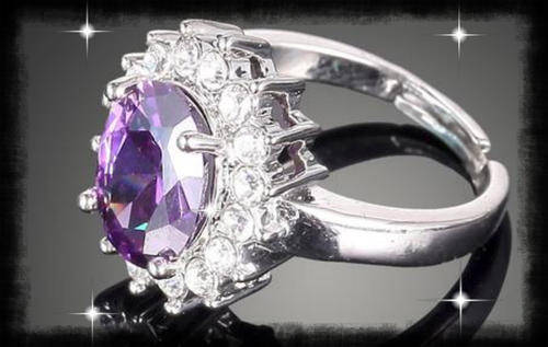 Luxury Purple Shiny 18K White GP with Austrian Crystal Ring ADJUSTABLE