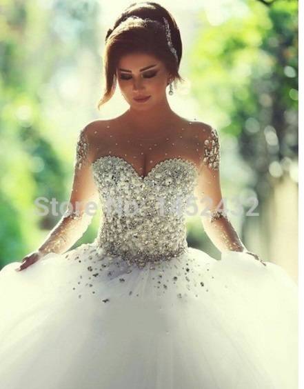 Luxury wedding dresses 2016 new crystal beads Long Sleeve Wedding Dress Organza and Tulle Wedding Go