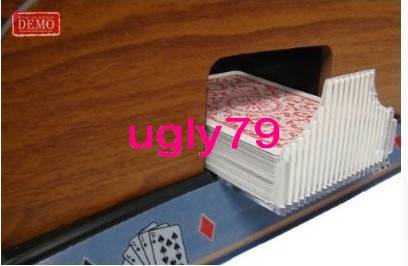 Are you looking for a quality card shuffler? Our luxury wooden card shuffler does just what you want it to do: shuffle a deck of cards (poker size or bridge size) at the push of a button. The whole process is simple: put 4 AA batteries into the machine (batteries not sold with shuffler), cut your cards in two halves and push the "shuffle" button. The shuffled cards will appear at the bottom of the shuffler. Done!