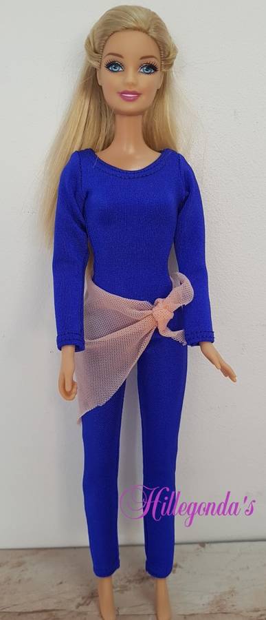 The unitard is made by Hillegonda using Lycra fabric. It fits most Barbie dolls. The price is for one (1) unitard only.