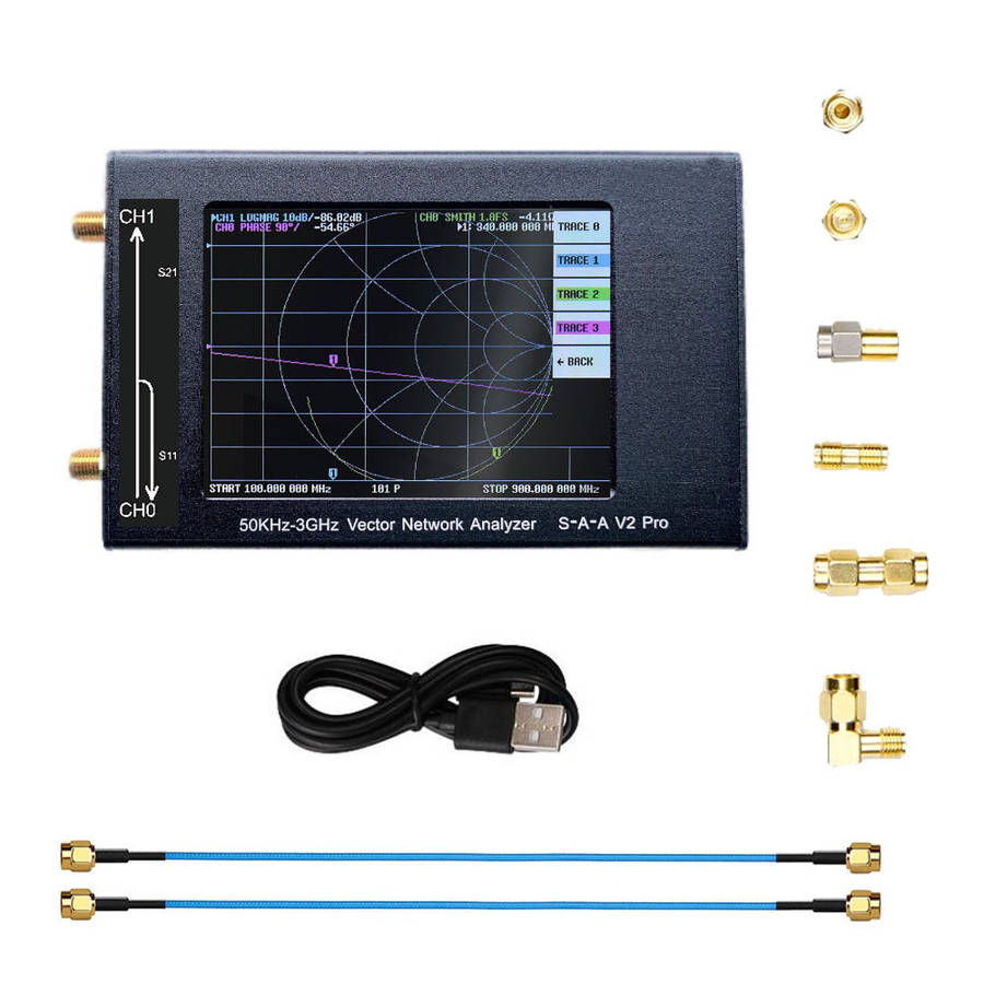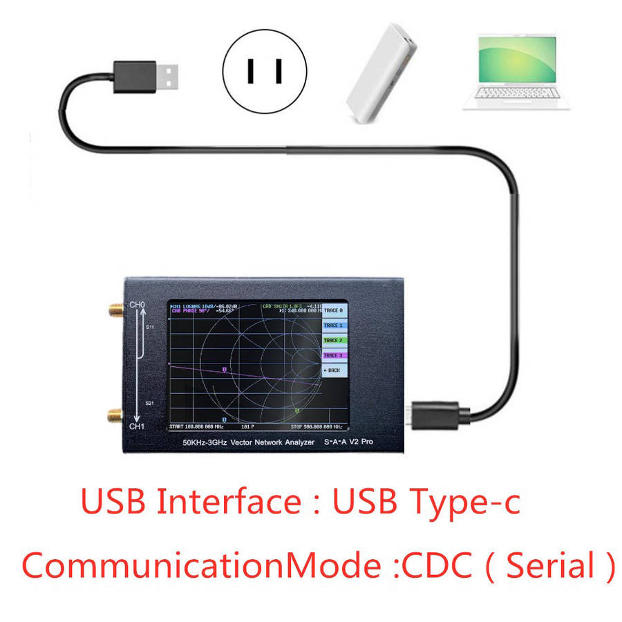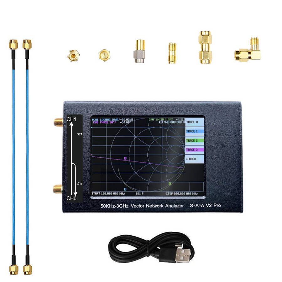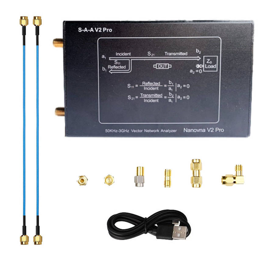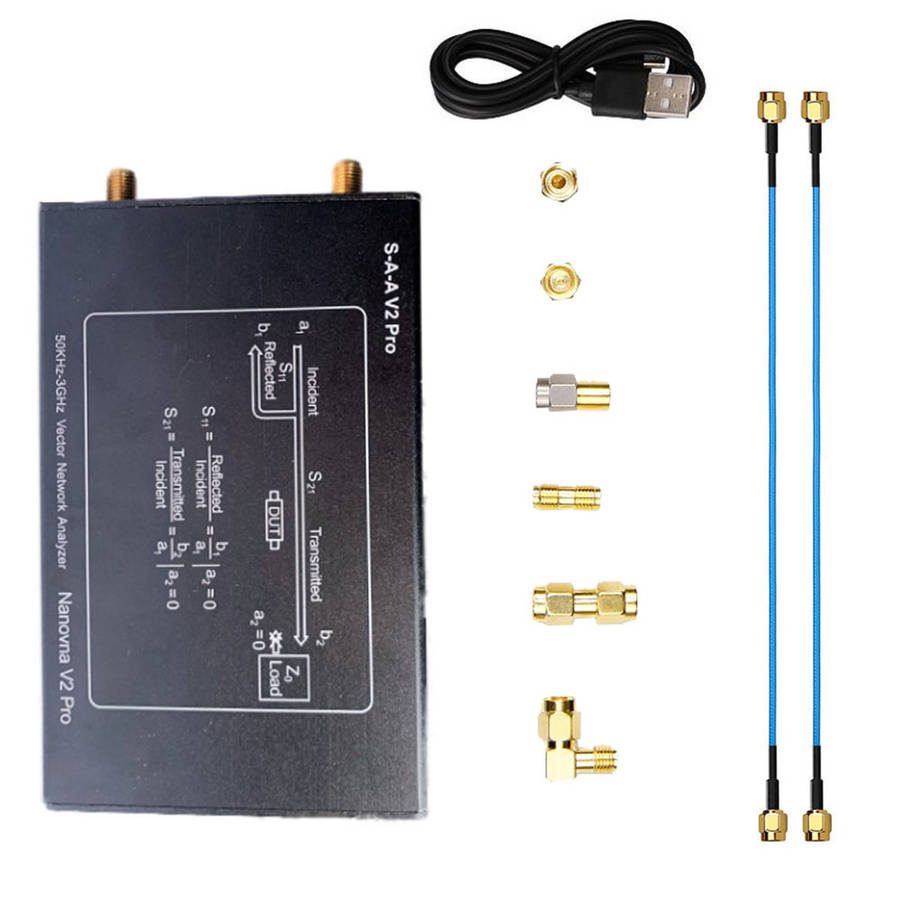 1. Using 0.5ppm TCXO: to ensure the frequency accuracy of high frequency measurement with 0.5ppm TCXO network analyzer. 2. Metal shell: the metal shell can fully protect the internal precision circuit, and fully consider the protection of external interface. 3. High Performance Calibration Kit: the network analyzer is equipped with a high performance calibration kit to ensure that the calibration SWR is less than 1.03 at 3GHz. 4. Good amplitude and phase stability: two customized high performance ss405 SMA RF cables provide good amplitude and phase stability. 5. Easy to carry: equipped with advanced plastic packaging, network analyzer is easier to carry and store. Specification: HDMB V2 Pro Frequency range:?50KHz-3GHz System dynamic range (calibration): 70dB (up to 1.5GHz), 60dB (up to 3GHz) S11 bottom noise (calibration): - 50dB (up to 1.5GHz), - 40dB (up to 3GHz) Scanning speed: 100 points / S Display: about 3.2 inches (320 * 480) USB interface: USB type-C communication mode: CDC (serial) Power supply: USB, maximum charging current 1a Battery:?built-in 1500mah lithium ion?(Optional) Battery connector: jst-xh 2.0mm Max scan point (on device screen): 201 Maximum scan point (USB): 1024 Return loss of port 2 (1.5GHz): 20dbtyp Port 2 return loss (3GHz): 13dB min Item size: 142 x 75X 23mm / (5.1 x2.9x0.9in) Product weight: 405 g / (14.3 oz.av ) Package size: 245 ?? 142 ?? 50mm / (9.7 * 5.6 * 2in) Package weight: 430 g (15.1 oz average) VNA QT software compatible system: for Linux, for Windows (7+), for Mac OS planned Package includes: 1 hdmb V2 Pro vector network analyzer host?(built-in 1500mah battery according to the choice) 1 * type-C USB cable 2 * 200 mm SMA male to male ss405 RF cable 1 * SMA simple calibration setting open 1 * SMA simple calibration set 1 * SMA simple calibration kit load 1 * SMA female to female connector 1 * Industrial installed box Details pictures: