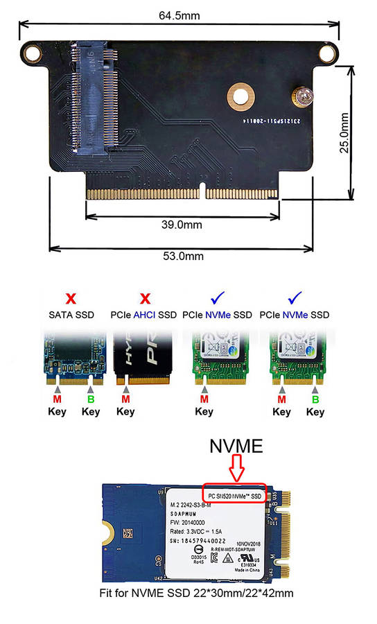 Product | M.2 PCIe NVME SSD Adapter Card Expansion Card for 2016 2017 Apple MacBook A1708 |