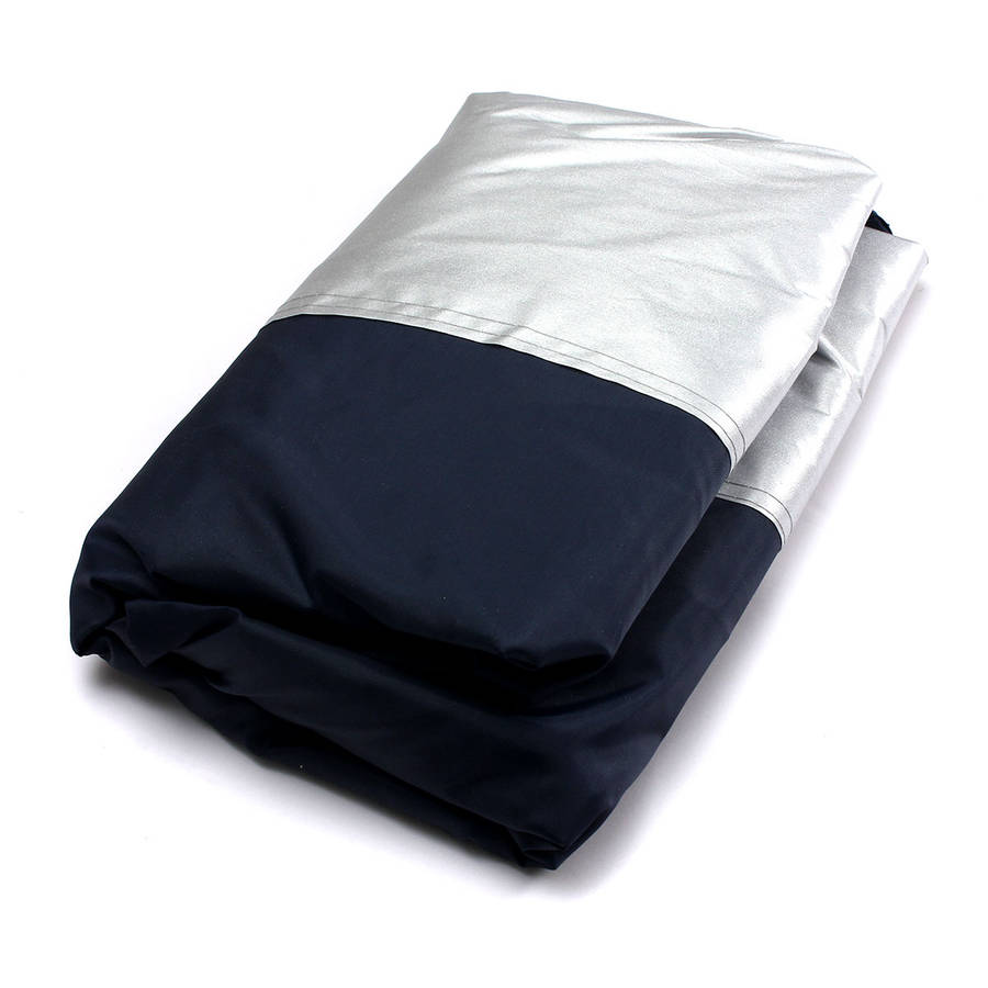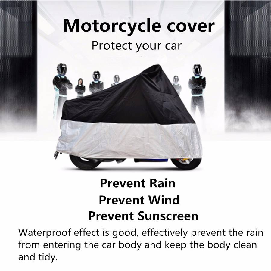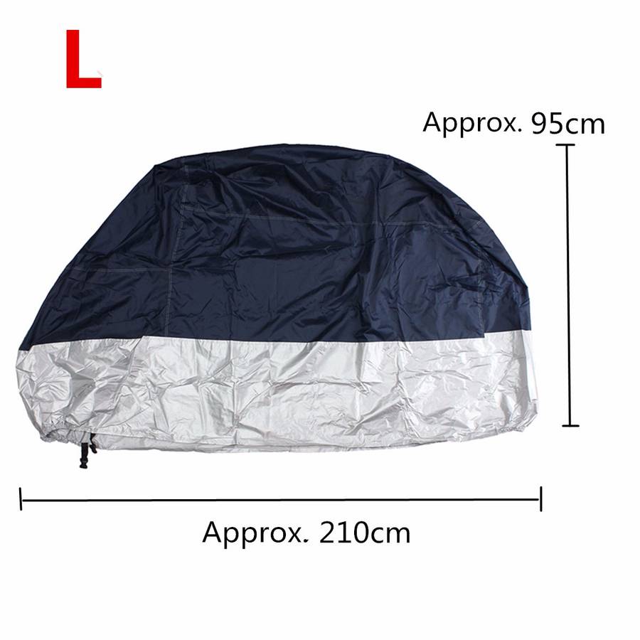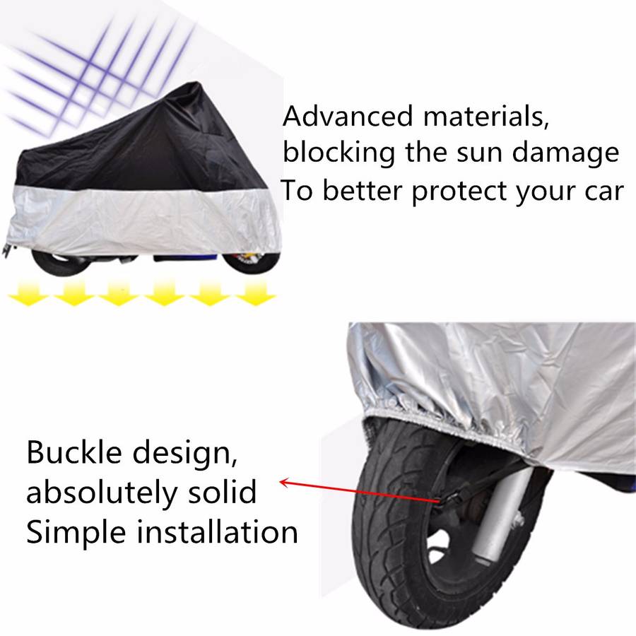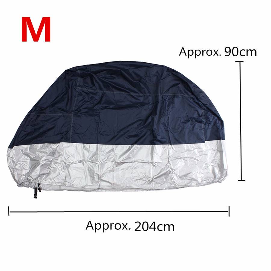 Description: Portable, high density waterproof sunscreen, can effectively prevent dust. Soft texture, suitable for various types of motorcycle use. The use of ultra thin anti radiation fabric, folded up completely without space, is quite convenient. The car cover at the bottom of the socket design, can be firmly caught, do not worry about the car cover off. Convenient use, small volume and convenient carrying, more humane than traditional keyhole tether design. Waterproof effect is good, effectively prevent the rain from entering the car body and keep the body clean and tidy. Beautiful lines, can be used in rain or shine weather , easy to install clean Specification: Product name: Motorcycle cover Material: 190TPU Color: Blue and silver Size: M: Approx. 90x204cm/35.4x80.3