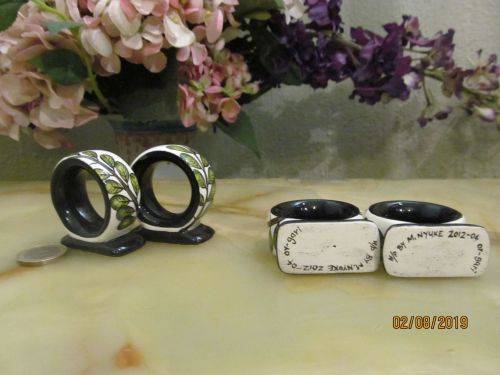 THIS IS THE 2nd LISTED SET / LOT OF 4 HAND PAINTED AND SIGNED "M. NYUKE" JAPANESE FINE PORCELAIN SERVIETTE RINGS. THE TWO LISTED SETS ARE ONLY DIFFERENT INSOFAR AS THEY ARE HAND PAINTED AND THEREFORE NOT IDENTICAL