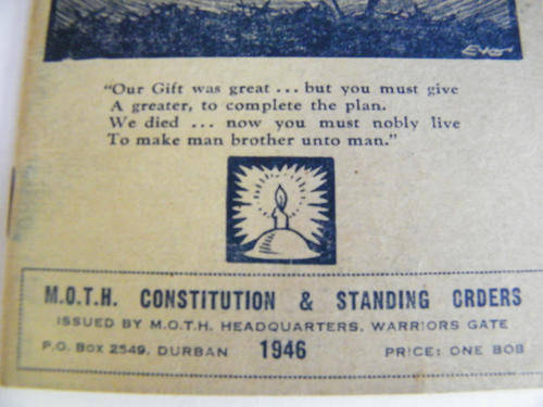 M.O.T.H. Constitution & Standing Orders 1946 booklet - as per photo
