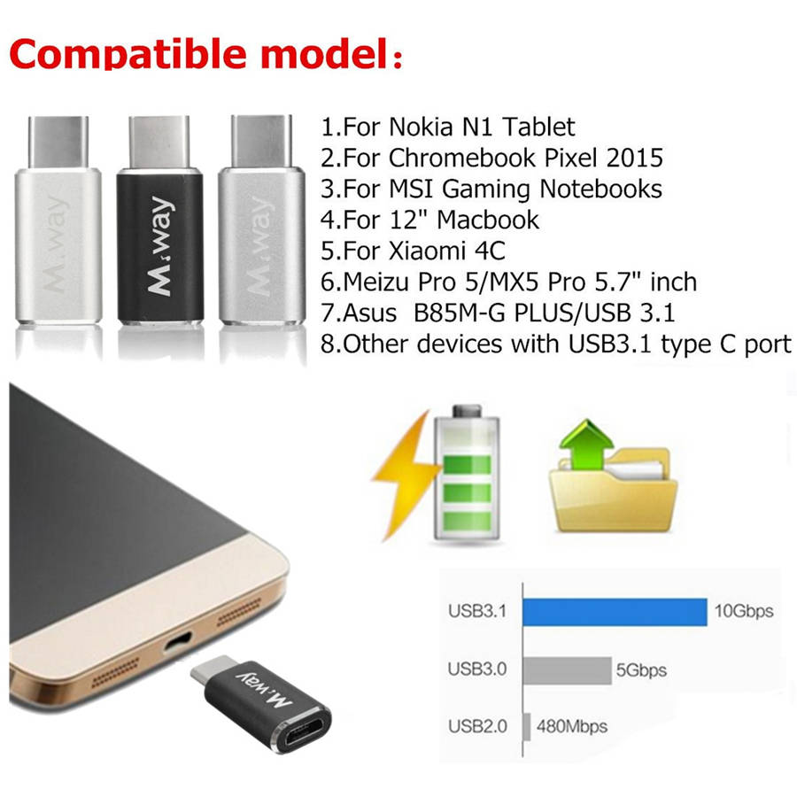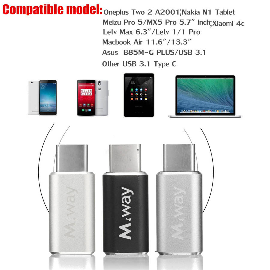 M.Way Aluminum OTG USB 3.1 Type-C Male to Micro USB 2.0 Female Data Sync Adapter1. 100% brand new and high quality.