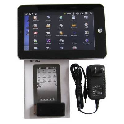 M002 with Lan Port, 7 Inch ePad Android OS 2.0 Version tablet PC Netbook UMPC, 1.3M webcam, Support WIFI, RJ45/2 USB port adapter, 90 degree Menu Rotation, CPU: ARM 9 platfrom, VIA WM8505, 300MHz.