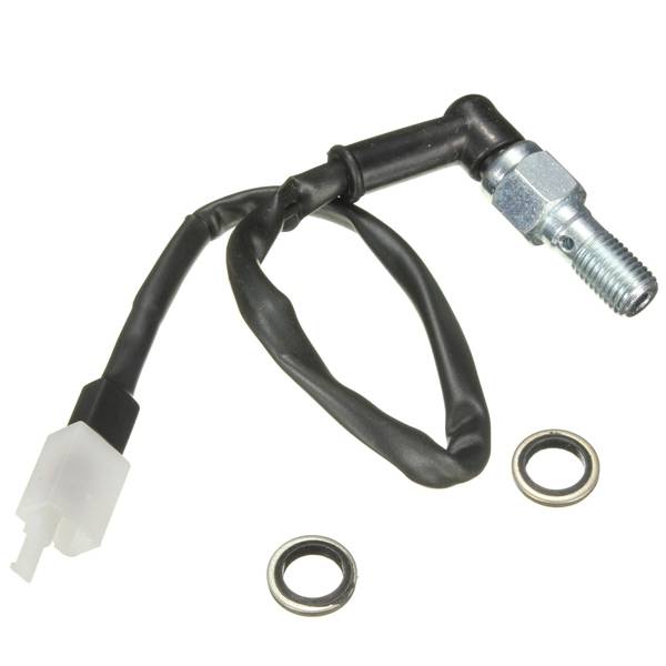 M10x1.25mm Banjo Bolt Motorcycle Hydraulic Brake Pressure Light Switch for Honda Description: Easy to insall Use for hydraulic brake system Fitment: fits most of HONDA/YAMAHA/KAWASAKI/SUZUKI motorcycles, pls confirm the size before you purchase. Specification: Condition: 100% brand new! Color: Black Size: M10 (10mm) diameter x 1.25mm thread pitch Total Length: Approx 30cm/12″ Quantity: 1 piece Package Included: 1 x Hydraulic Brake Pressure Light Switch