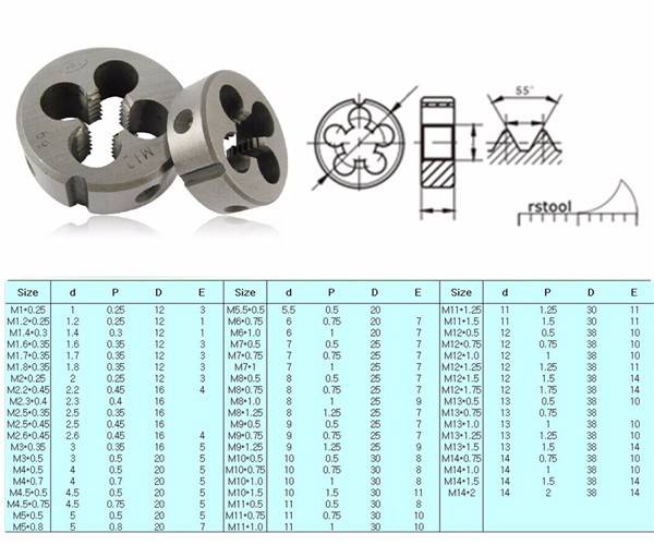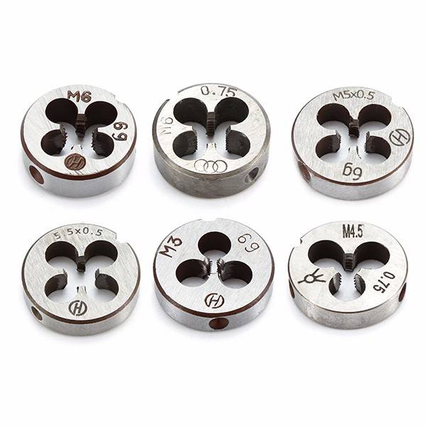 Description: M3 to M6 20mm Daimeter Metric Right Hand Die Right-hand Thread Alloy Steel Die Specification: Material: alloy tool set Color: silver Round Die Diameter: 20mm It onlyincludes one diewhen you choose the size you want.