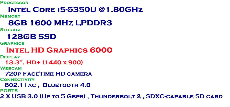 MACBOOK AIR 13 ,CORE I5-5350U,1.80GHz,8GB RAM ,128GB SSD, MICROSOFT OFFICE ,FINAL CUT PRO ,ADOBE CS5