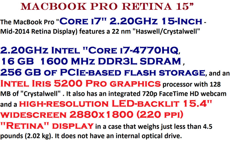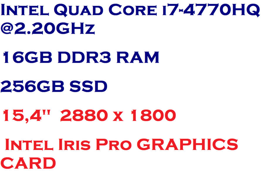 QUAD CORE I7-4770HQ @2.20GHz , 16GB RAM ,256GB SSD