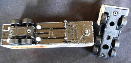 DAF Space Cab with articulated trailer . Scale 1;86.It is in a "played with" condition. the back hatch of the trailer missing The Length is 17 cm.