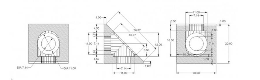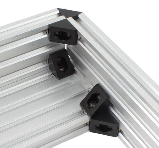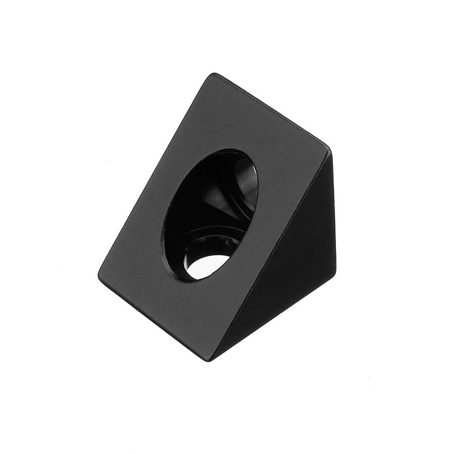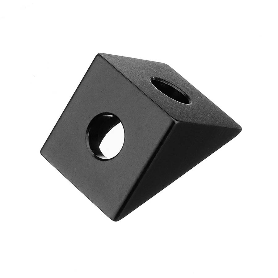 Material: Anodized Aluminum Color: Black Size: 20mm x 20mm x 26.87mm Application: Compatible with 20mm V-slot or T-slot profile extrusion systems Pro-Tip: Mount this corner to V-slot using M5 8mm screw and M5 T-nuts.