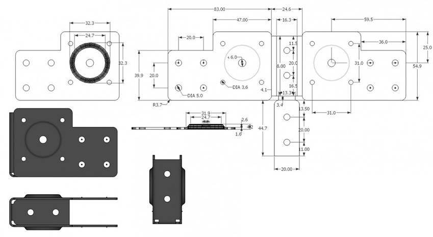 Specification: Material: Anodized Aluminum Color: Black Size: 83mm Thickness: 1.7mm Features: The V-Slot modular actuator end mounts are stamped and folded aluminum end mounts and when used with V-Slot Aluminum Extrusion create a belt driven linear actuators by mounting both a Nema 17 Stepper Motor and the Smooth Idler Pulley. You can create V-Slot actuators a varying lengths using any of the four available sizes of V-Slot. See the example pictures. One of the great features of these end mounts is the ability to mount to the ends as well as the bottom. This modular concept allows for the creation of many different machine designs. See example pictures to understand how these end mounts can be coupled with the Mini V plate. The mounting holes on the end mounts are 20mm apart allowing for easy connection to both the Mini V Plate and V-Slot extrusion. Use with the double tee nut for a quick and simple installation. So if you need a belt driven linear actuator that can be made to custom lengths and with connection flexibility for a modular style build, then these end mounts are perfect for your project. Package Included: 1 x V-Slot Linear Actuator End Mount