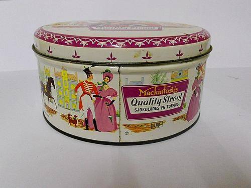 This is a shallow round just under 9cm in depth tin with a diameter of 17.5cm. Perfect storage tin.