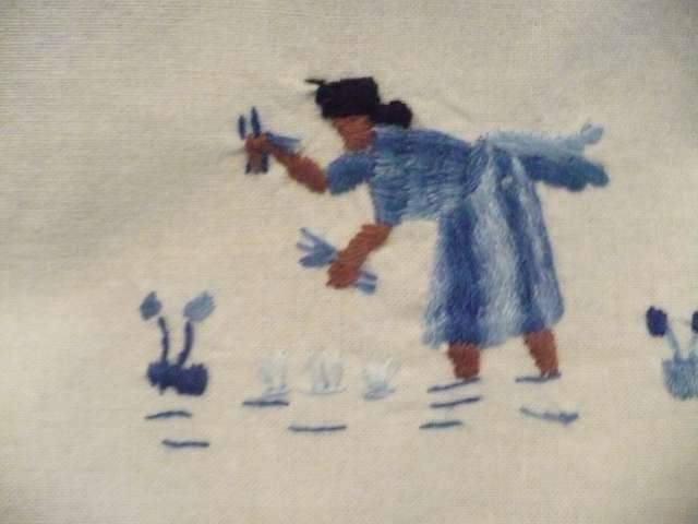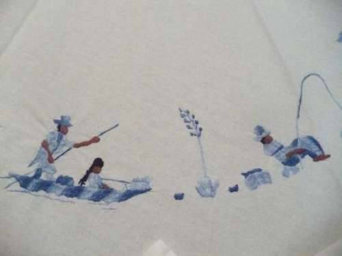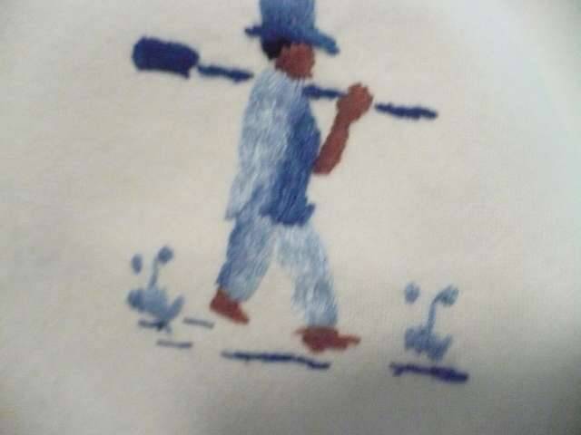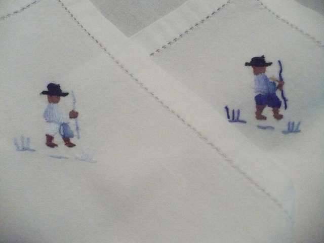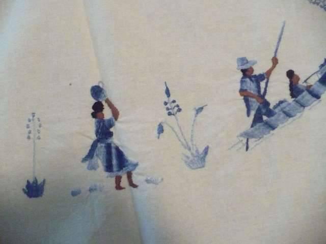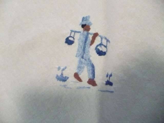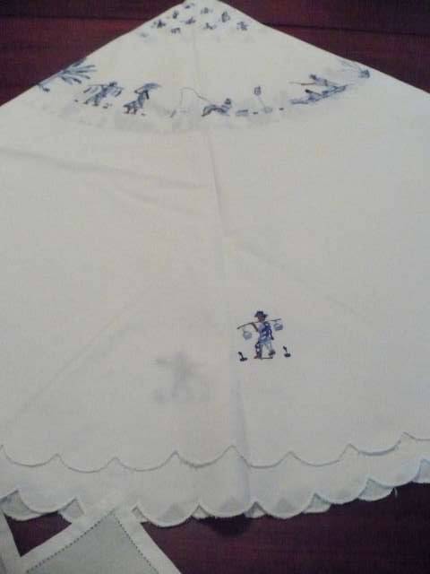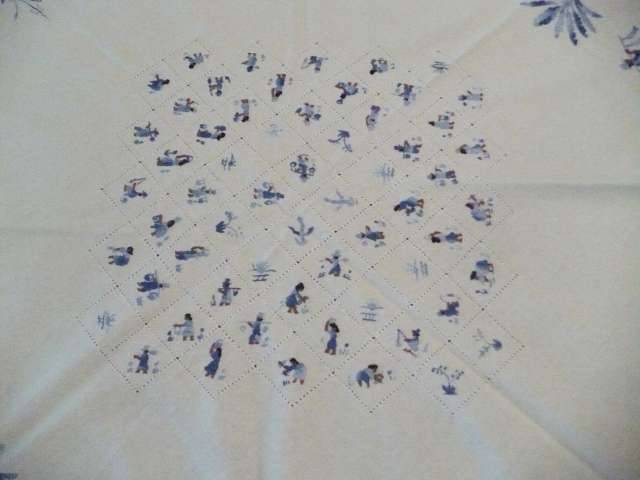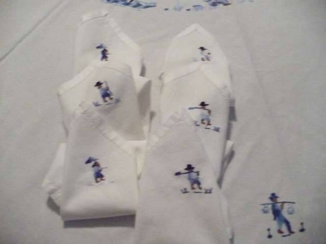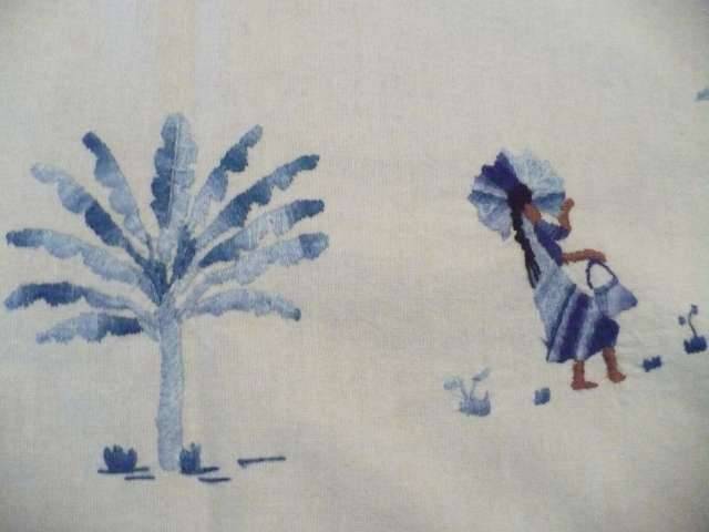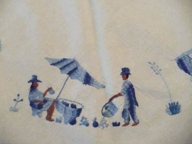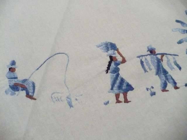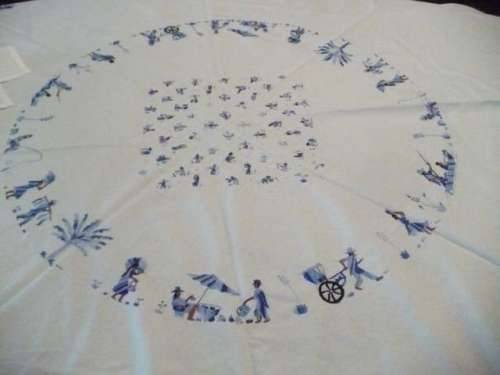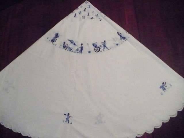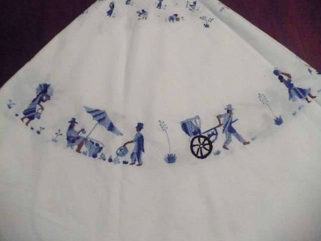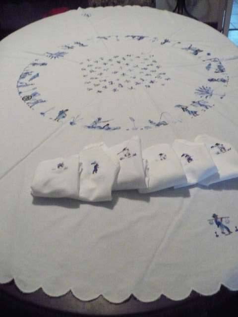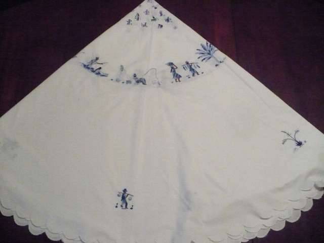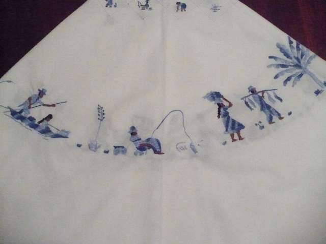 MADAGASCAR EMBROIDERED ROUND COTTON TABLE CLOTH 1.7 METRE DIA. + 6 SERVIETTES