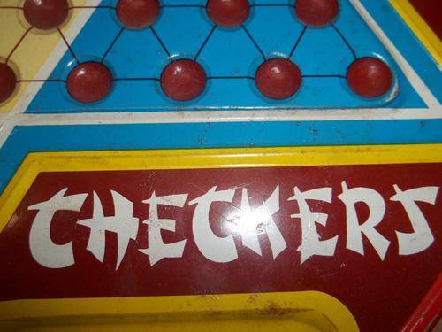 Made In England Checkers Tin Board. (please view photo`s for condition)