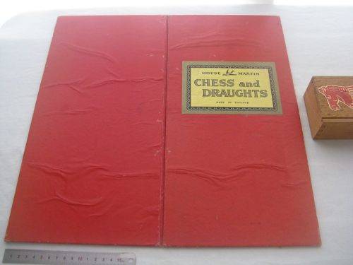 MADE IN ENGLAND HOUSE MARTIN CHESS & DRAUGHTS BOARD & HOUSE MARTIN STAUTON CHESS SET.
