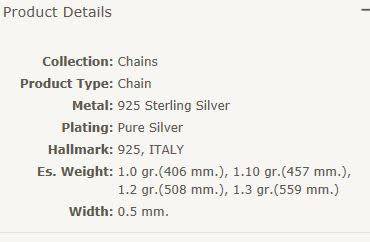 Made In Italy, Solid 925 Sterling Silver Chain 55 (.5mm)
