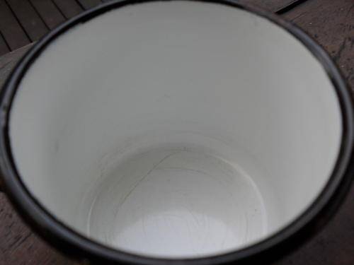 Measures diameter at the rim 8.5cm and the height is 7.5cm