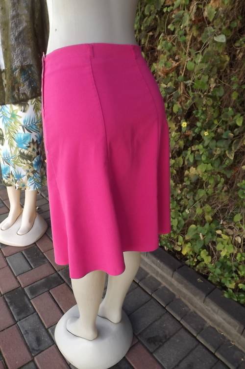 Magenta pink knee length skirt.Panelled with zip in side.Size 32/8.Loops for belt.