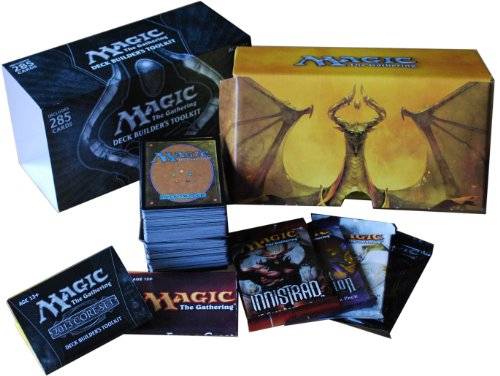 Magic: the Gathering Deck Builder's Toolkit 2012 (MTG) The Deck Builder's Toolkit gives any collection a major boost with 125 semi-random cards and four 15-card booster packs - perfect for new players and players getting back into the game! Plus; they'll get a guide containing info on how to build their own customized deck. Since no two Toolkits are quite the same - your players can challenge each other with a variety of custom-built decks! Contents: 125 semi-random cards suitable for building several different Magic decks. Four 15-card booster packs from various current sets. Strategy insert with deck suggestions and tips on how to build several good Magic decks. Learn-to-play insert. Magic-branded; reusable card storage box.