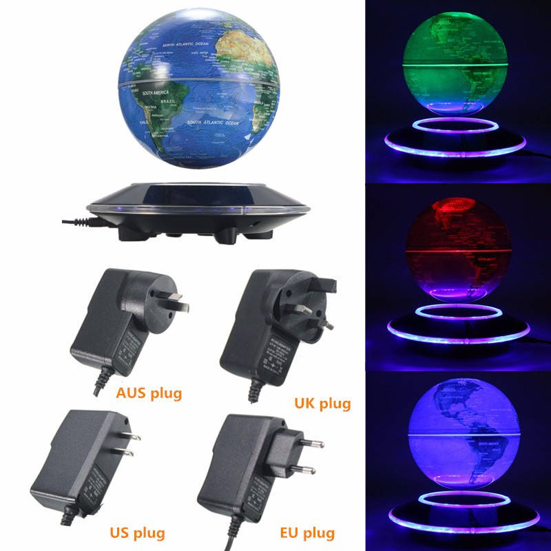 Package weight: 1.31 kg Magnetic Levitation Floating globe 6 inch Amazing Office House Decorcolorful Valentines Day Gifts Description: -Globe Size: 6 inch -Suspension height: 2cm -Power: 12V, 1500mA, less than 1.5w -Chassis Size: 18X18X5cm -Features: air suspension luminous color, home furnishing, gifts to share gifts, advertising impressions -Product optional attributes: EU/US/AUS/UK plugs Package Includes: 1xGlobe base 1xGlobe 1xManual 1x Power Adapte