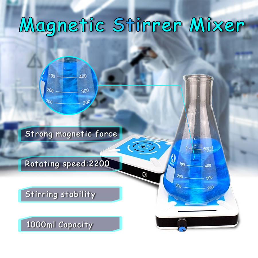 Note:The beaker is for display only and is not included in the product list. Specifications Product Name: Magnetic Stirrer Mixer Motor Power: 25 W Max Mix Capacity: 1000ML Rotating speed: 0~2200r/min Plug Size: US Plug(Free Universal Adapter) Work Table Size: Approx.85 x 85 mm/3.34*3.34 Product Size: Approx.120 x 120 x 30mm/4.72*4.72 *1.18 Features - Easy to carry - Stir mixing solution - Strong magnetic force & Speed control rotation - Used in laboratories, such as laboratories in various universities and colleges, environmental monitoring, etc. Package Included 1 x Magnetic Stirrer Mixer (Free 1X Stirrer bar)