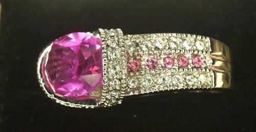 MAGNIFFICENT PINK and WHITE TOPAZ FASHION RING
