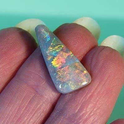 October birthstone! Big broad flashes of azure blue, fiery orange, yellow, green and pink in this rare magnificent solid semi-black opal. Click on the logo above to view our other items