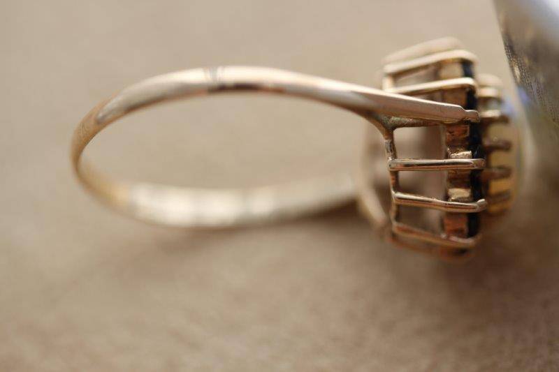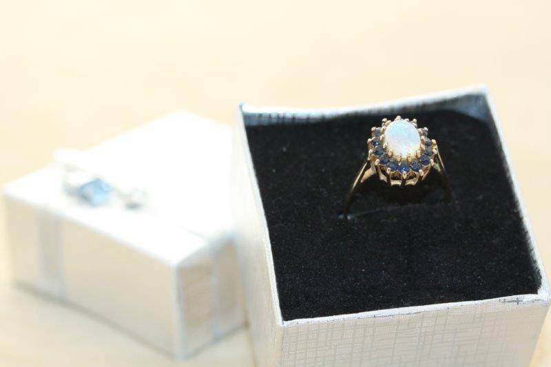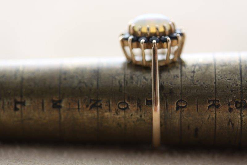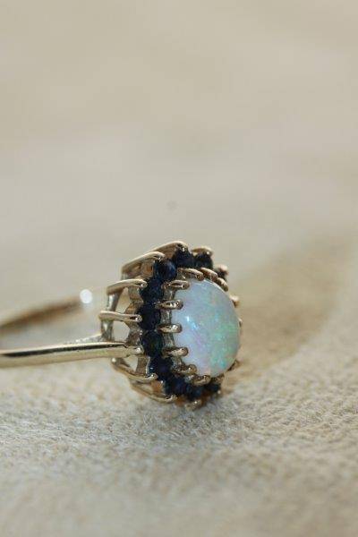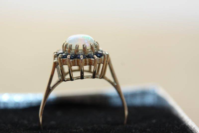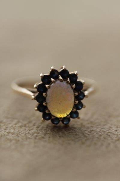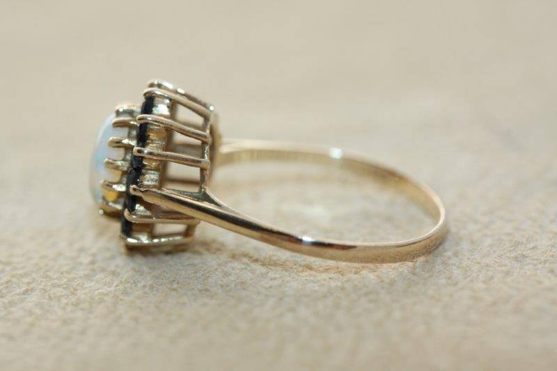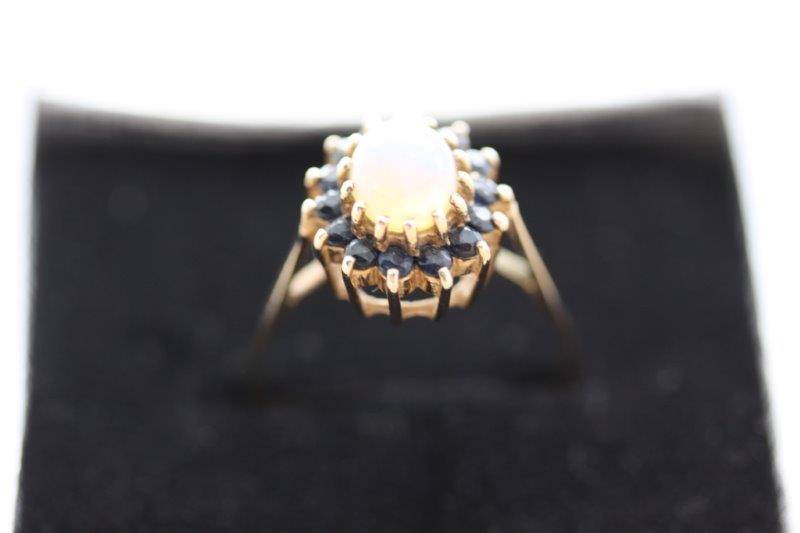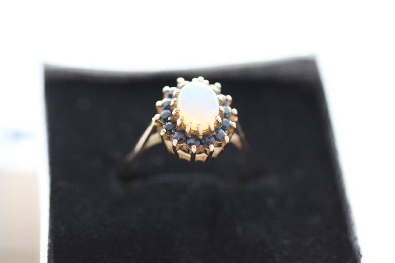 THIS IS A HUGE HUGE BARGAIN!!! A MAGNIFICENT 9ct SOLID GOLD HALLMARKED ANTIQUE RING WITH EXQUISITE DETAILING!!! THE RING HAS A BEAUTIFUL OPAL (MOOD) STONE SURROUNDED BY SPECTACULAR SAPHIRES!!! THIS IS A STUNNING COLLECTOR RING AND WITH THE GOLD PRICE BEING SO LOW (AND CLIMBING) IT'S A GOOD TIME TO BE BUYING QUALITY ANTIQUE JEWELLERY LIKE THIS!!! PLEASE VIEW THE PICS VERY CAREFULLY FOR MORE DETAIL ON THE RING QUALITY PLUS THE CONDITION; YOU ARE BIDDING ON WHAT YOU CAN SEE!!!