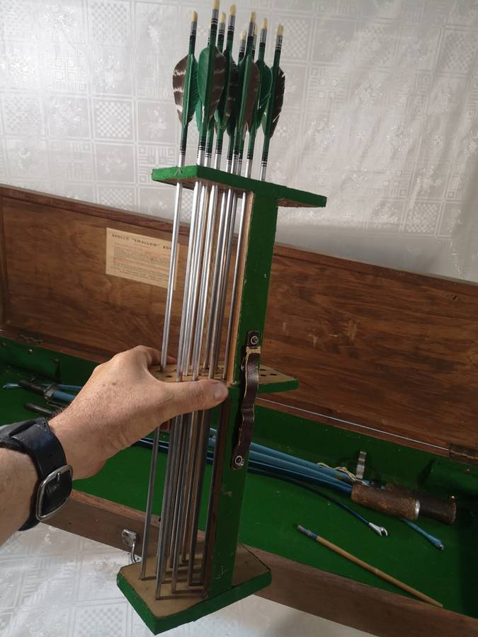 MAGNIFICENT ACCLES & POLLOCK 20TH CENTURY APOLLO ARCHERY SET (COMPLETE WITH 2 BOWS IN SET)