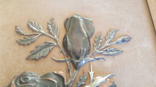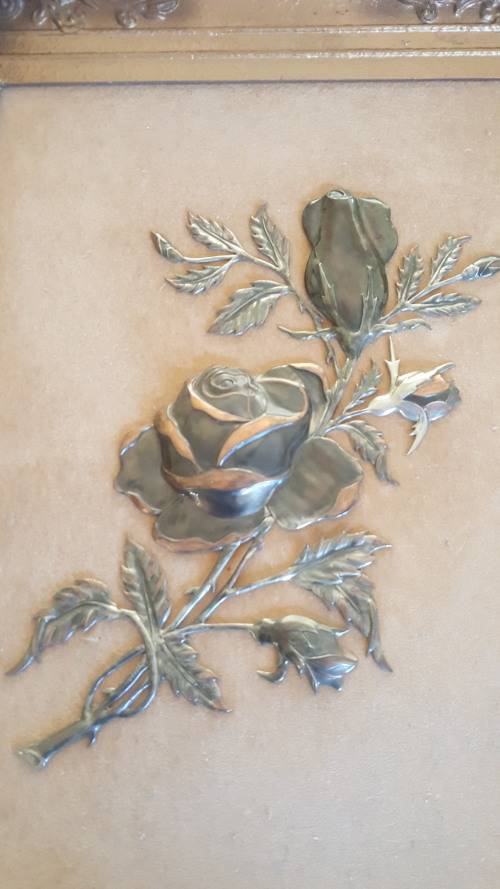 Magnificent Antique Framed Fine Metal Sculptured Silver Metal Rose. I am not 100% sure what metal it is.