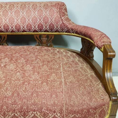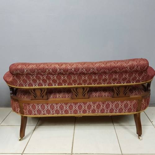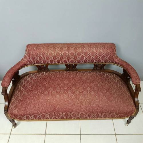 This magnificent antique Victorian carved Mahogany "Parlour Sofa" is on its original castors and is upholstered in a beautiful period style brocade fabric. The sofa measures 140cm long x 65cm wide x 72cm high. The sofa has a little age and usage related wear and tear and ideally would need to be upholstered and the backrest frame tightened. The stunning Victorian Baluster chair legs and the gorgeous padded backrest and armrests complete this stunning sofa to a "T". The sofa would be incredible in a formal living room or sun room or even in a conservatory or ladies dressing room. Please view the pics carefully to fully appreciate this wonderful antique Victorian sofa and to confirm the condition.