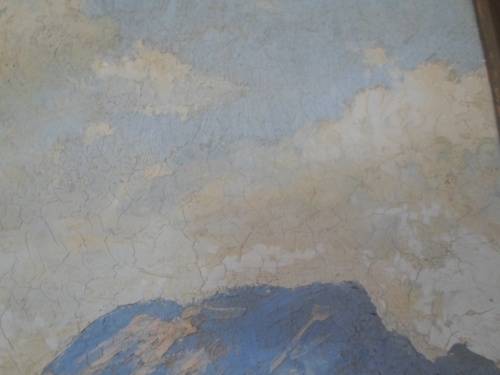 IT HAS SLIGHT CRACKLE IN THE SKY PART BUT AREN'T ACTUAL CRACKS SO THE PAINT WON'T FLAKE OFF.