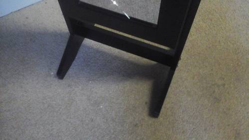 THE CUPBOARD STANDS ON TWO LEGS AND HAS ADDITIONAL PIECE JOINING IT FOR EXTRA SUPPORT.
