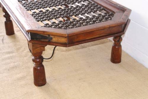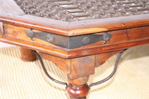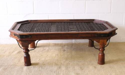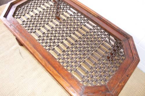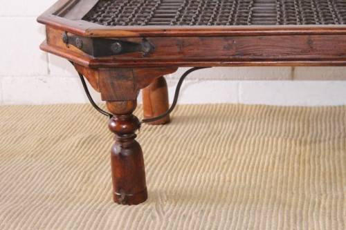This magnificent larger solid Balinese Teak metal/ iron grate-top centre coffee table with substantial turned legs and support struts measures a very decent 135cm long x 75cm wide x 42cm high. Please note that the table does need glass. The table has metal corner corner straps which add to the stunning looks of this centre table. This would make an incredible focal piece in a living room and would look just as amazing on a patio or games room etc. The table has some age and usage related wear and tear and scuffs, but it adds to the feel and look of this style of furniture. The table would be amazing with a leather lounge suite. Please view the pics carefully to fully appreciate this very striking teak and metal centre coffee table and to confirm the condition. Please view the shipping options or request courier costs prior to purchasing any of our products.