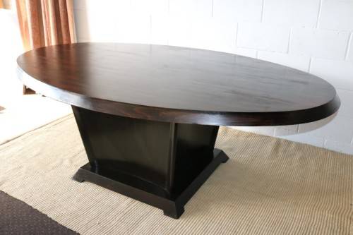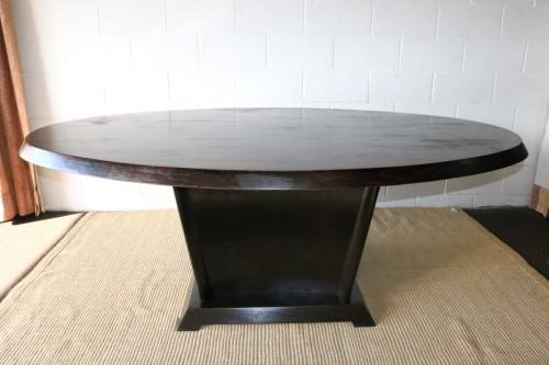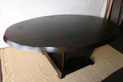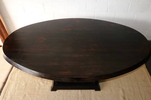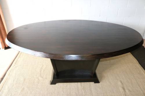 This absolutely incredible Oak finished oval dining table is in great condition and looks stunning. The table measures a very decent 212cm long x 130cm wide x 72cm high. The table has an unusual design with a thick centre column leg that looks awesome. This table would be the perfect piece of furniture to put in a lovely dining room and it is sure to add a breath of elegance into any room. The table could also be used as a boardroom table in an office with chairs. There are some scuffs on the surface of the table but it is not hugely noticeable. Please view the pics to confirm the condition of the table.