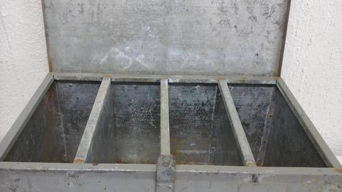 MAGNIFICENT VINTAGE GALVANISED FOUR DIVISION STORAGE BOX. FUNCTIONAL USEFUL PIECE FOR A WORKSHOP