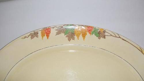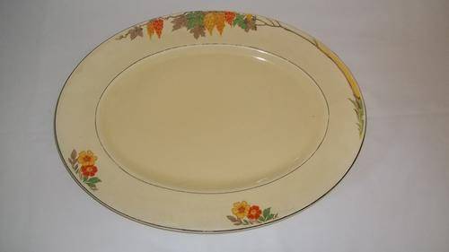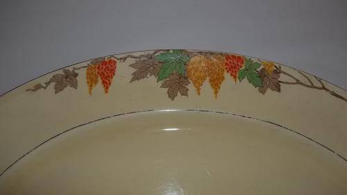 THIS STUNNING VINTAGE MYOTT LARGE OVAL FOOD PLATTER MEASURES 41cm x 31.5cm. THE BACK OF THE PLATTER HAS BEEN STAMPED "MYOTT, STAFFORDSHIRE, ENGLAND" THE PLATTER HAS SEEN SOME USAGE WEAR AND TEAR, BUT IS STILL A REALLY PRETTY ADDITION TO YOUR DINNER TABLE. THE PLATTER HAS A BAND OF GRAPE/ GRAPE VINES AND TWO SETS OF PRETTY FLOWERS AROUND THE RIM.