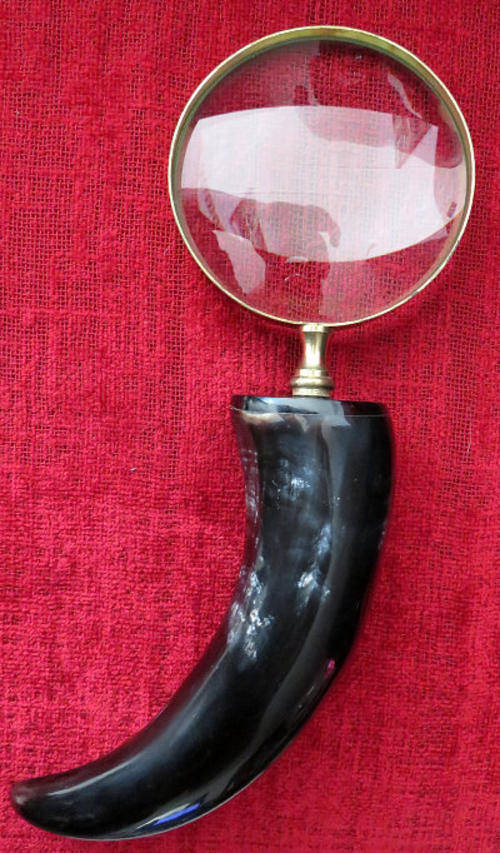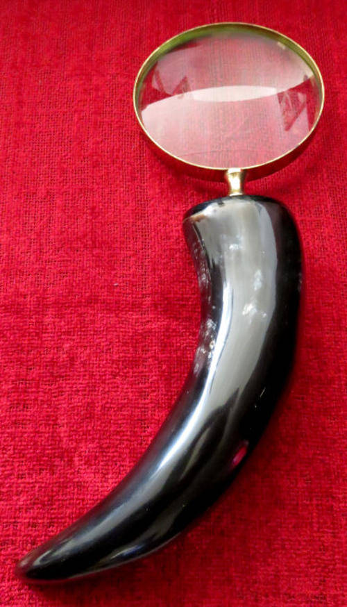 MAGNIFYING GLASS - Horn Handle with Brass & Glass - Made in India - Unique and Striking Display Item