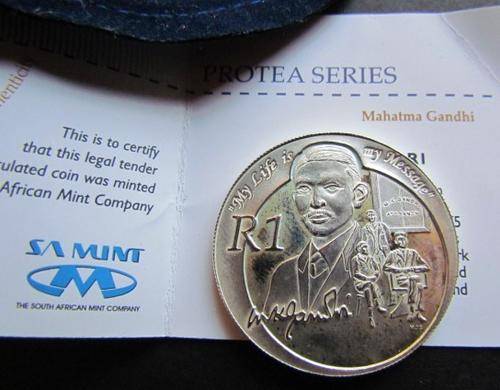 UNCIRCULATED 2008 Ghandi SILVER COIN IN SA MINT BOX WITH CERTIFICATE of AUTHENTICITY! GHANDI CELEBRATIONS IN THE FIRST WEEK OF OCTOBER!! NOT MANY MINTED! EXTREMELY VALUABLE!!!!!